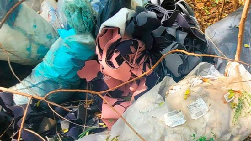 Guarda Municipal flagra descarte de resíduos de fábricas de calçados em nascente em Birigui